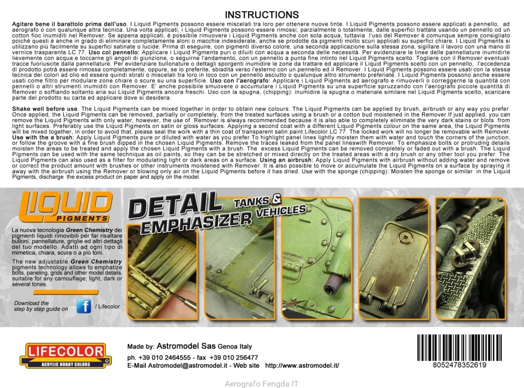 Pigmenti da tutti i kit possono variarsi tra di loro cosi si creano tanti opzioni come patinare il proprio modello. E la cosa importante - tutto é da un unico fornitore e singolo produttore. Senza preoccupazioni se saranno i colori compattibili.