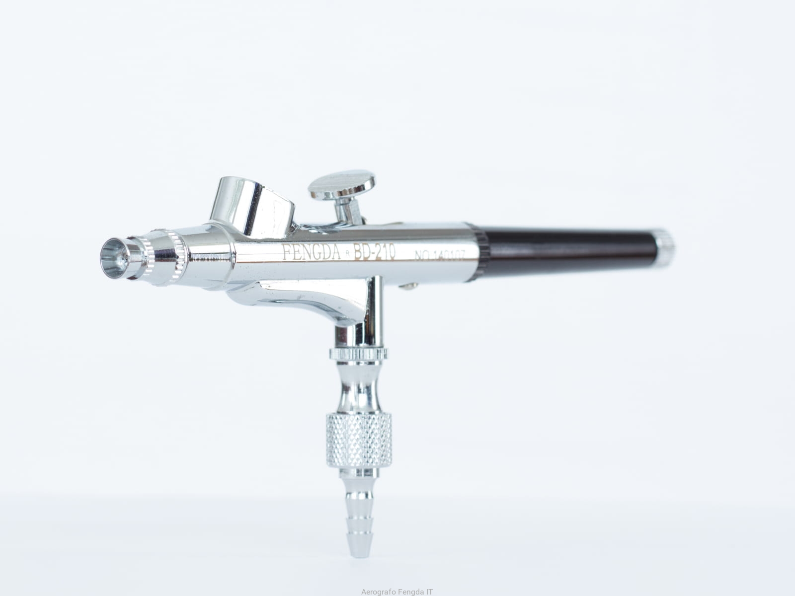l´aerografo Fengda BD-210 è una pistola a spruzzo universale a doppia azione interamente in metallo (l'aria viene rilasciata nella prima fase e la quantità di vernice è regolata nella seconda).
