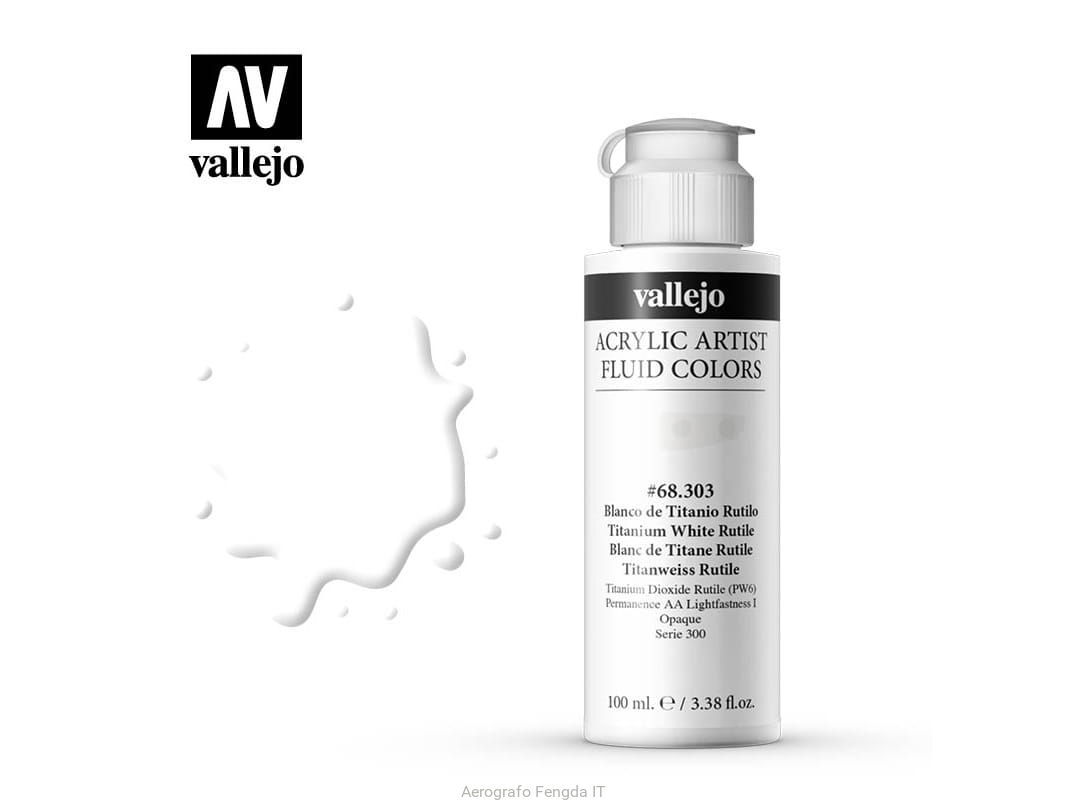 Vallejo Acrylic Fluid Color 68303 Titanium White Rutile (100ml)