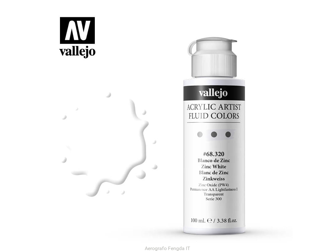 Vallejo Acrylic Fluid Color 68320 Zinc White (100ml)