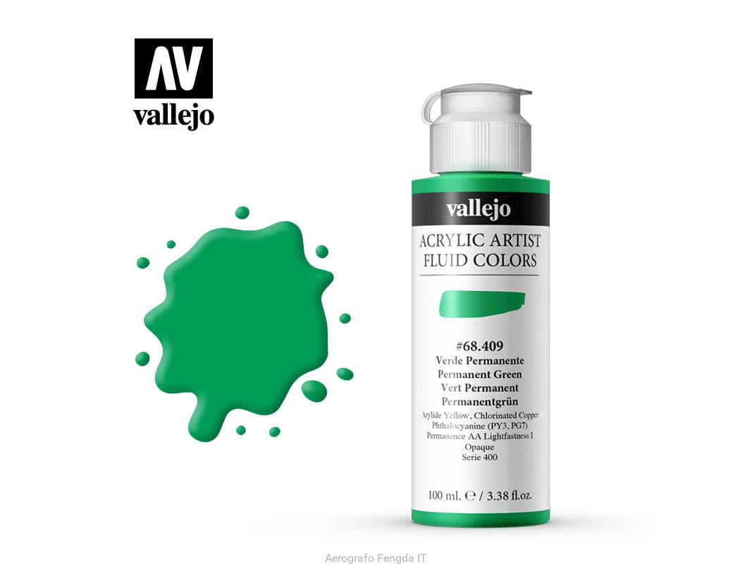 Vallejo Acrylic Fluid Color 68409 Permanent Green (100ml)