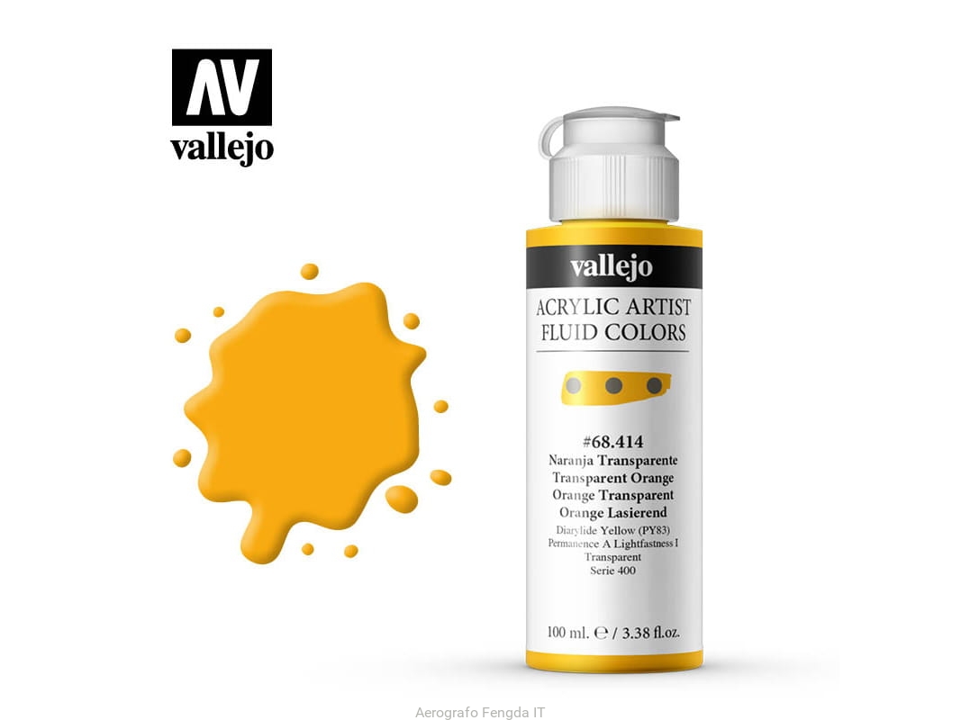 Vallejo Acrylic Fluid Color 68414 Transparent Orange (100ml)