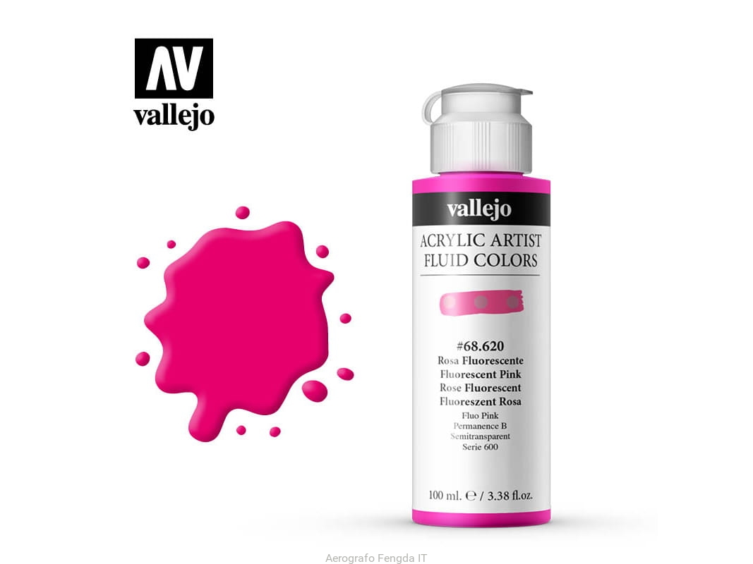Vallejo Acrylic Fluid Color 68620 Fluorescent Pink (100ml)