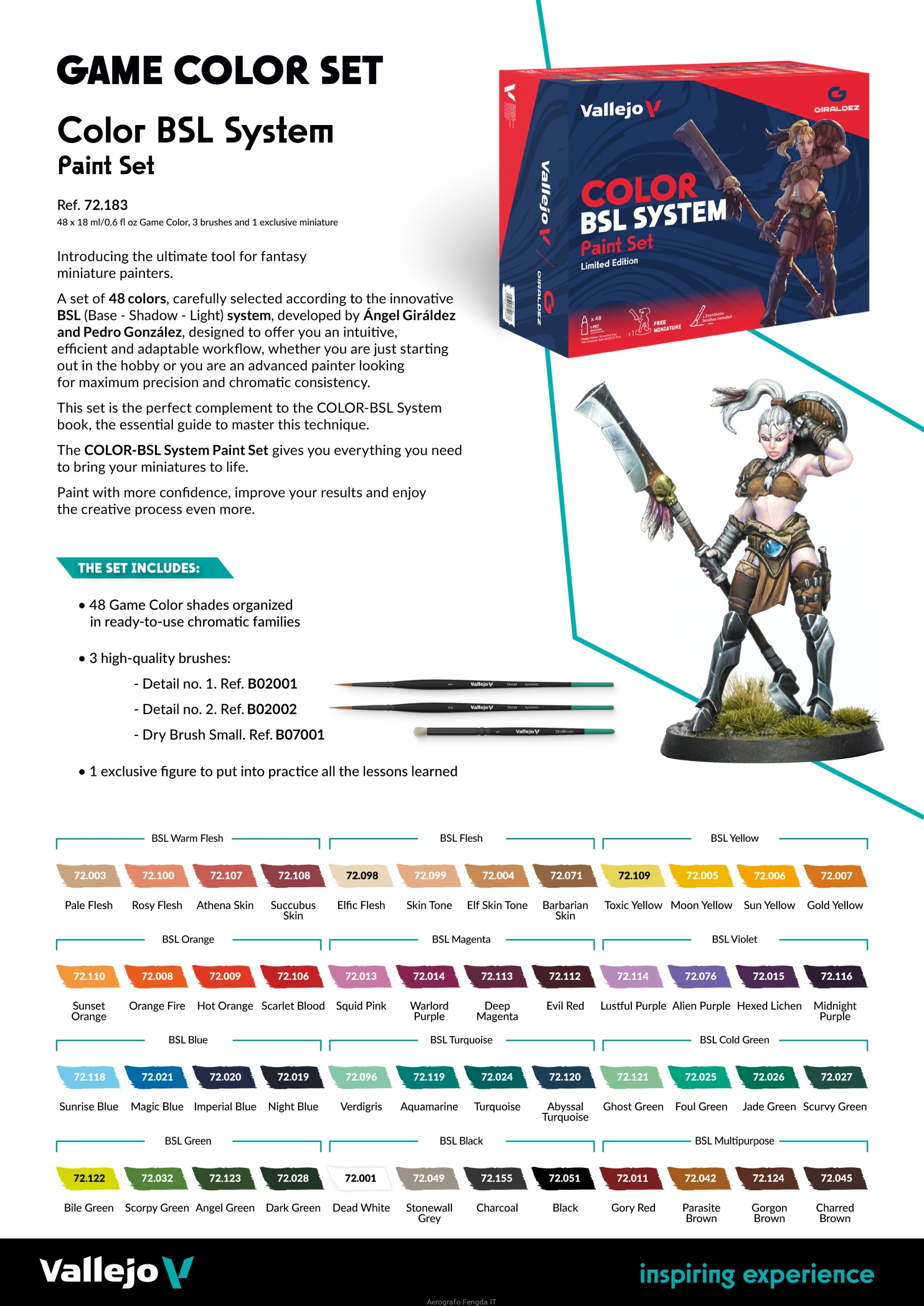 Vallejo Game Color 72183 Color BSL System (48x18ml) + 3xbrush + figure