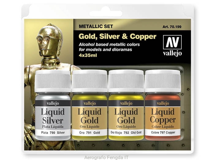 Vallejo Metallic Set 70199 Gold, Silver & Copper (4x35ml)