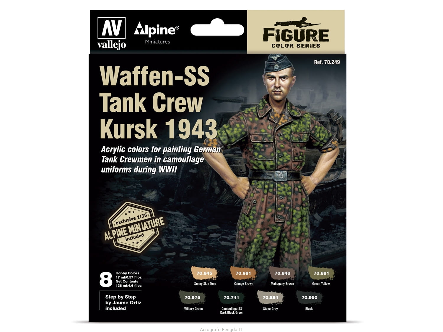 Vallejo Model Color set 70249 Alpine Waffen-SS Tank Crew, Kursk 1943 by J.Ortiz (8x17ml) + FIGURE