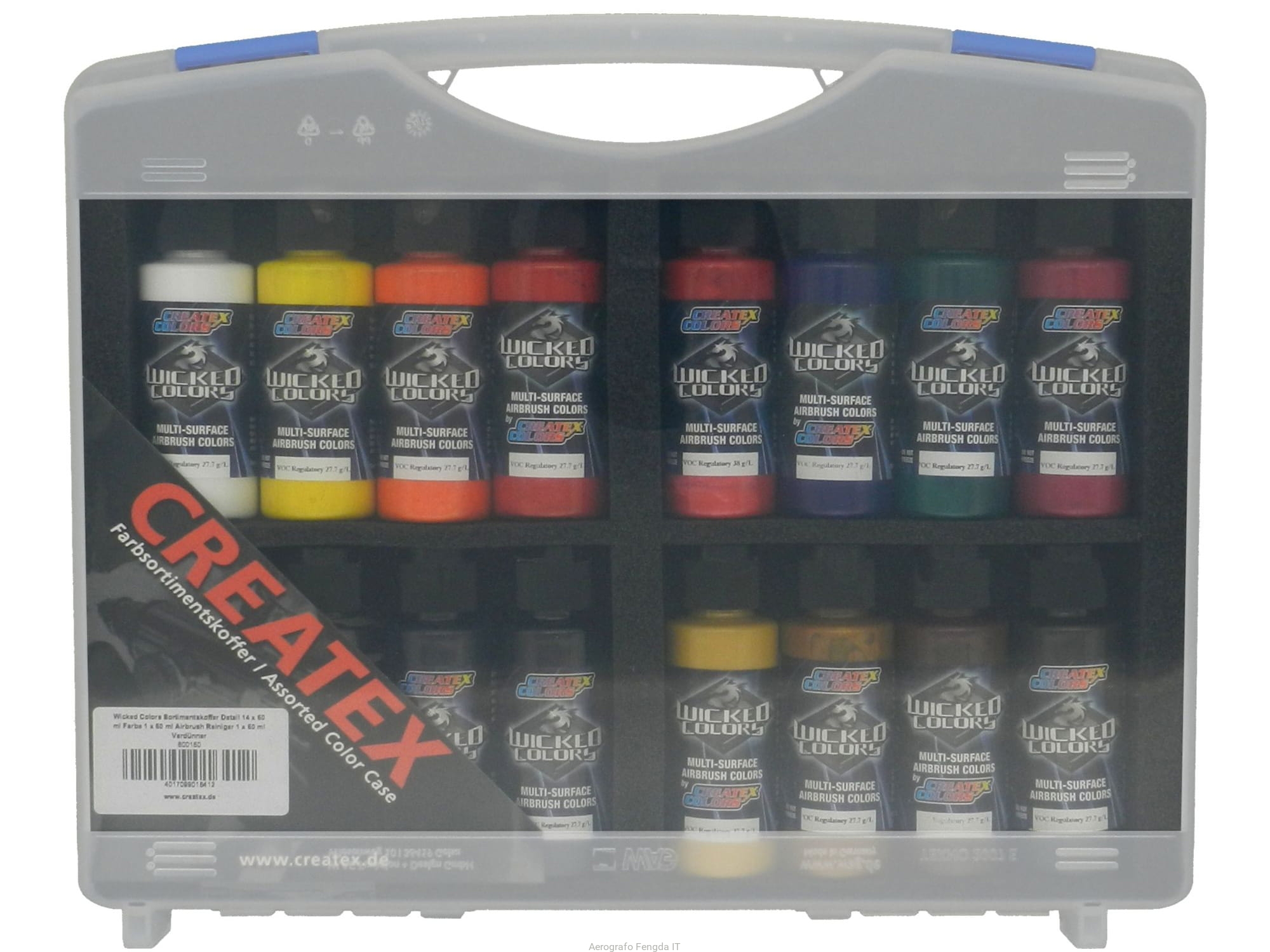 Wicked Colors Case Detail (14x60ml Paint, 1x60 ml Airbrush Cleaner, 1x60ml Reducer)