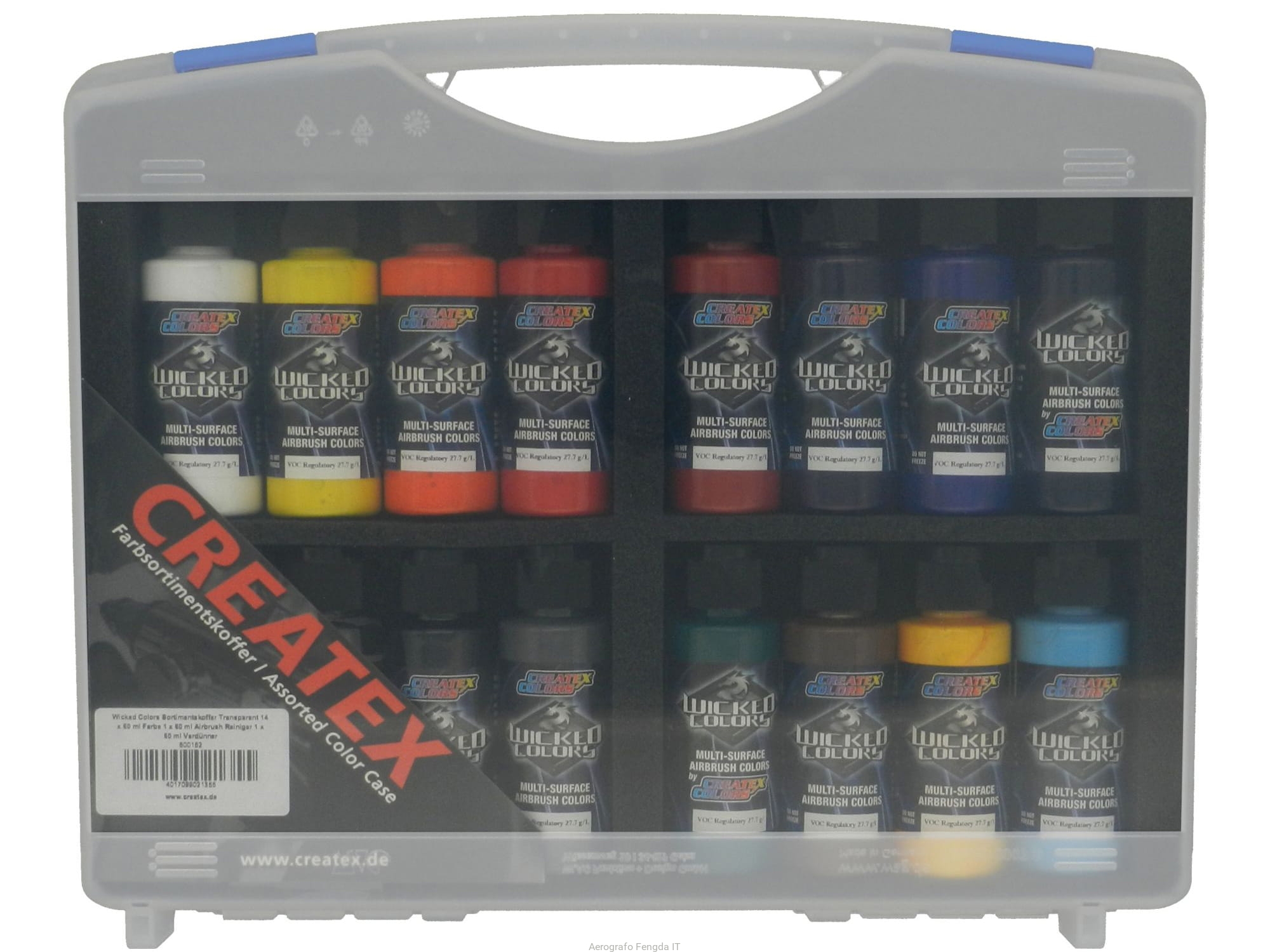 Wicked Colors Case Transparent (14x60ml Paint, 1x60ml Airbrush Cleaner, 1x60ml Reducer)